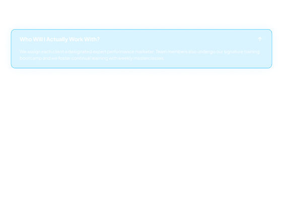 We assign each client a designated expert performance marketer. Team members also undergo our signature training bootcamp and we foster continual learning with weekly masterclasses.